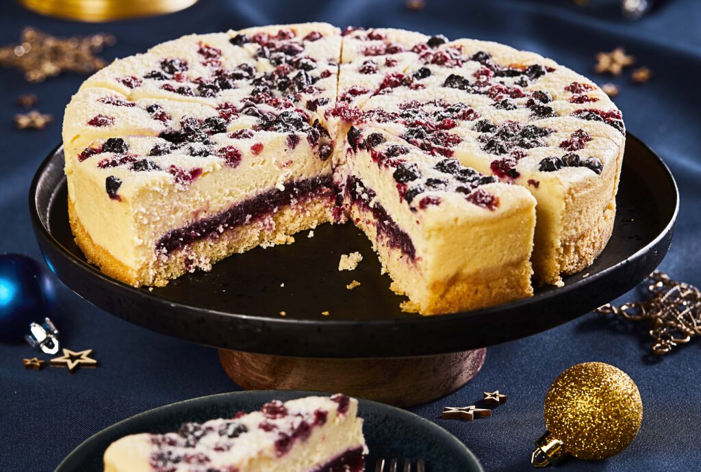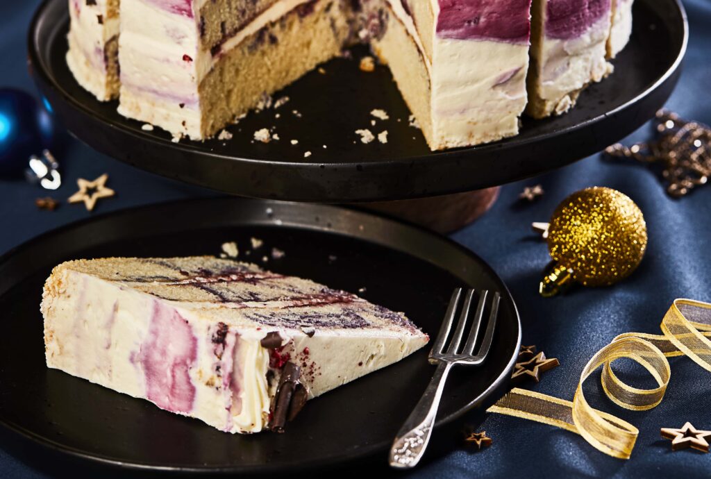 Another seasonal showstopper, our Country Range Mulled Berry Torte sees a silky vanilla sponge topped with mulled berry gel and white chocolate mousse before being sprinkled with mixed berries and finished with a dusting of sweet snow.