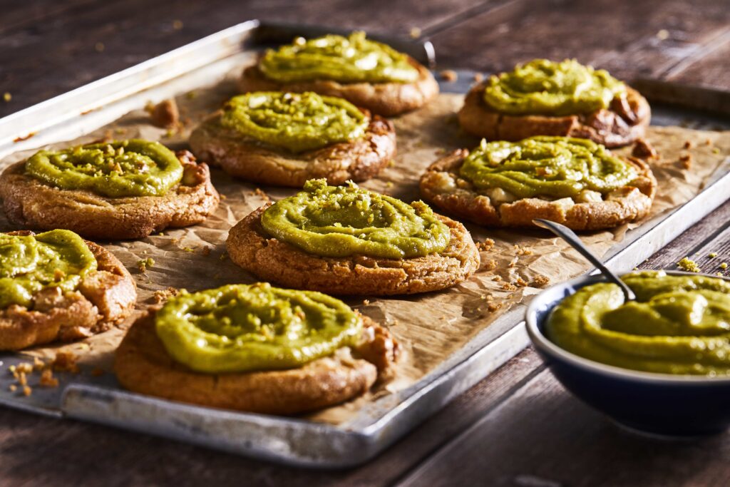 Pistachio is everywhere at the moment, so jump on this trend with this irresistible pistachio cream which is the perfect topping for our White Chocolate Cookie Pucks.