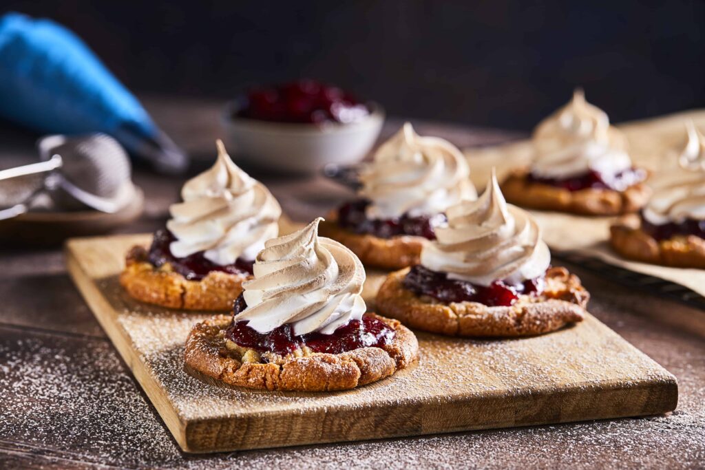To make our new Cranberry and White Chocolate Cookie Pucks extra festive, why not try topping with Country Range Cranberry Sauce and a melt-in-the-mouth meringue? The warming spices in our Speculaas Spiced Cookie Pucks are perfect for the colder months. Try creating these decadent cookie cups with a filling of your choice and topped with a thick layer of chocolate.